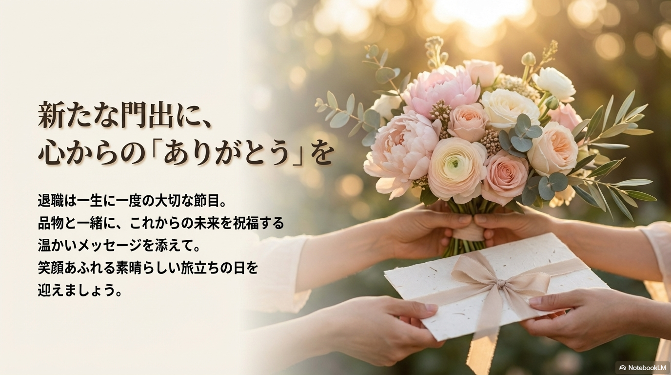 - 退職後の新しい門出を祝うメッセージを添えることが大切