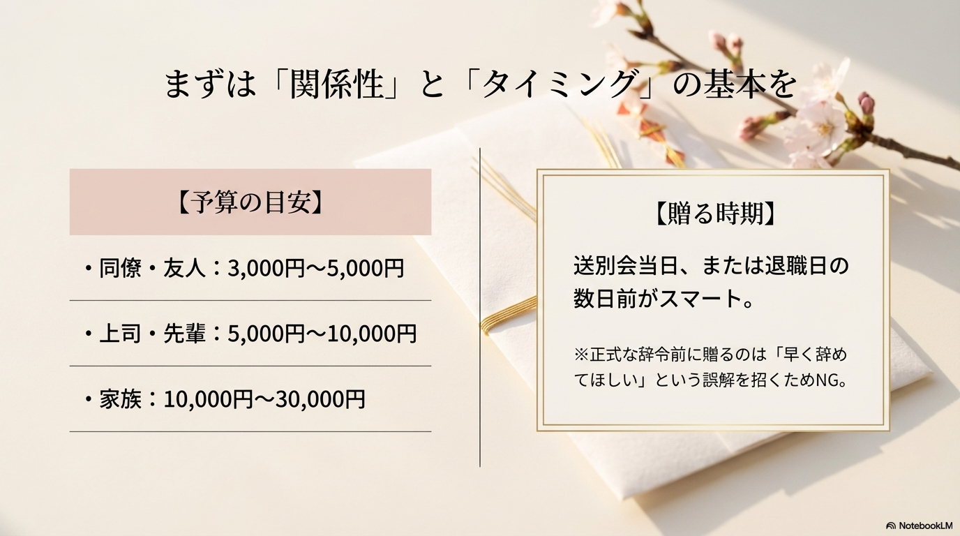 - 関係性ごとに異なる予算相場と失礼のない贈り方のマナー